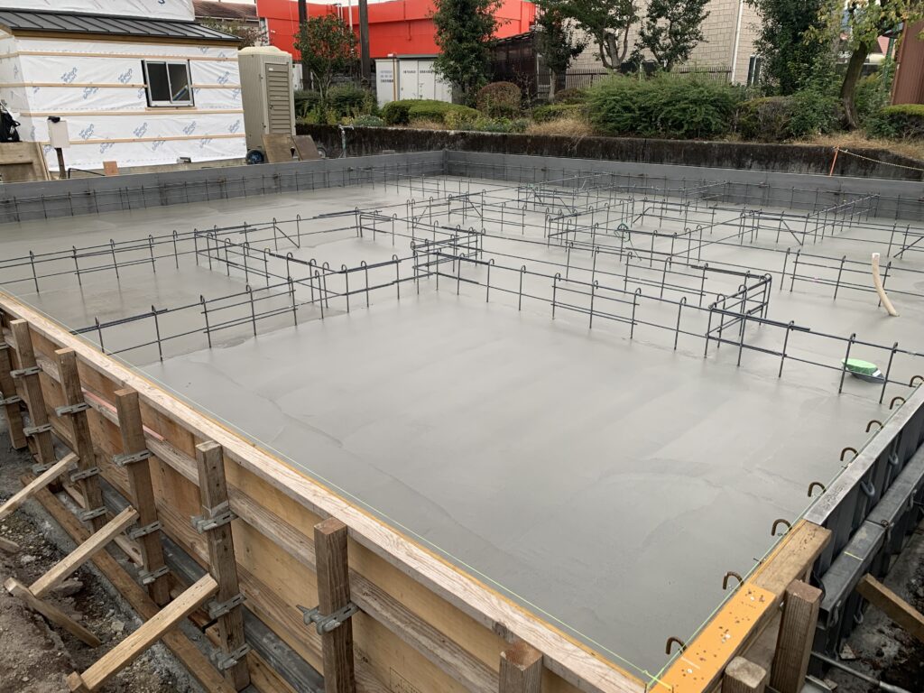 配筋検査を通過してベタ基礎のベース部分のコンクリート打設を行いました。