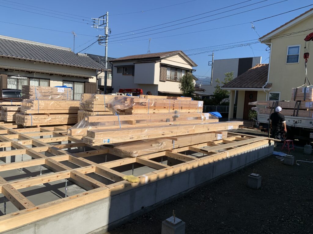 基礎工事が完了し、現場では土台敷きの工程を行いました。